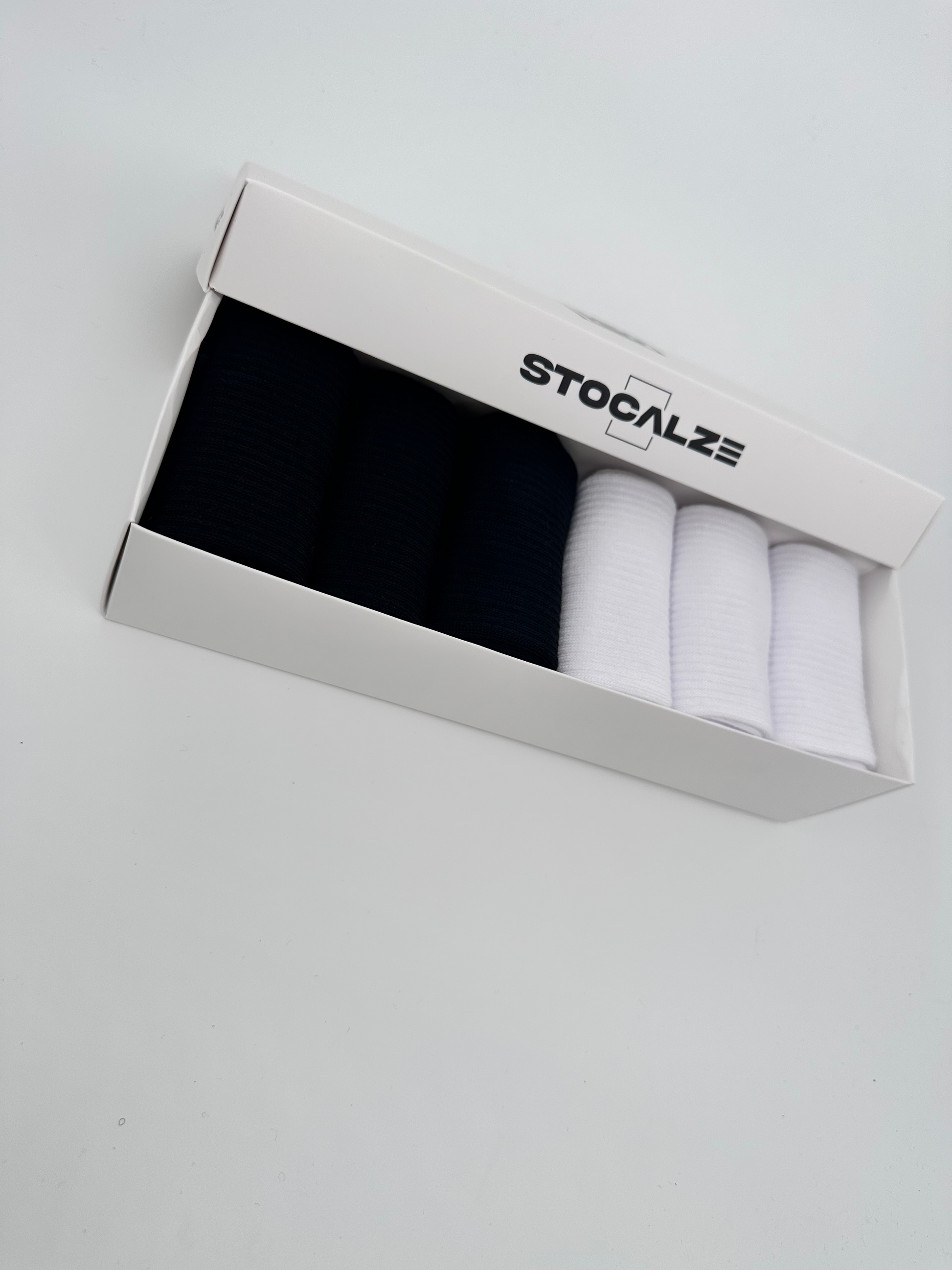 Stocalze Kadın Bambu Tenis Çorabı. 6'lı Kutulu Siyah Beyaz Renkli Dikişsiz Terletmez Kolej Çorap Seti.