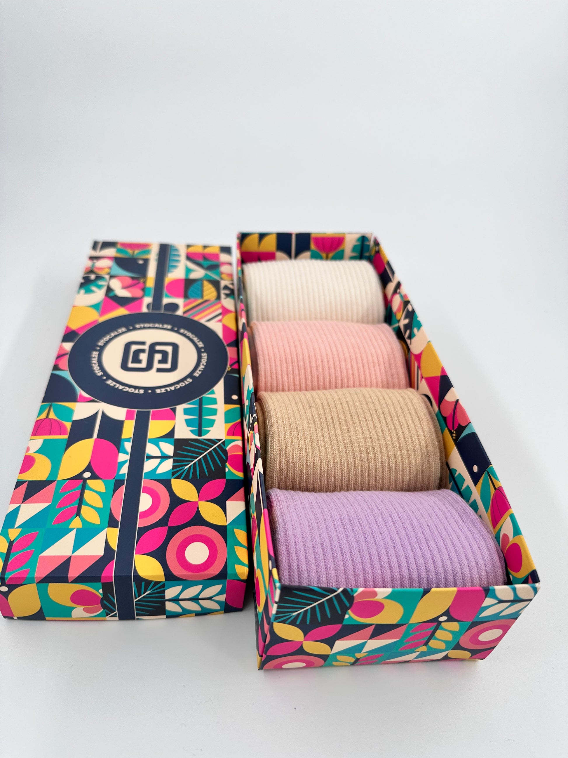 Stocalze Kadın Karışık Renkli Bambu Tenis Çorabı. 4'lü Kutulu Ekstra Yumuşak Dikişsiz Terletmez Kolej Çorap Seti