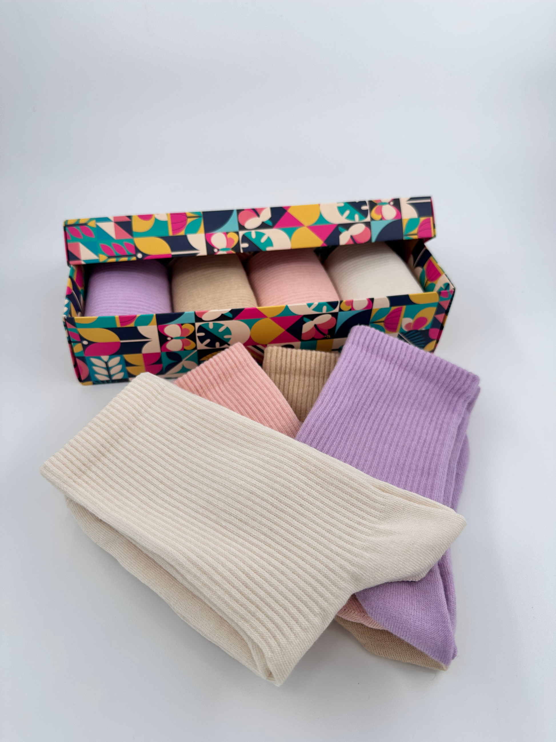 Bu Özel Set 4 Farklı Zarif Renk Seçeneği Sunarak Hem Klasik Hem De Modern Kombinlerinize Kusursuz Uyum Sağlar.Ekru, Lila, Somon Ve Hardal Tonlarındaki Bu Çoraplar Tenis Çorabı tarzını Sevenler İçin İdeal Bir Seçenektir. Hem Spor Hem De Günlük Giyim İçin Uygundur Ve&Nbsp;Sneaker, Bot, Loafer Veya Evde Rahat Kullanım İçin Mükemmel Bir Tamamlayıcıdır.